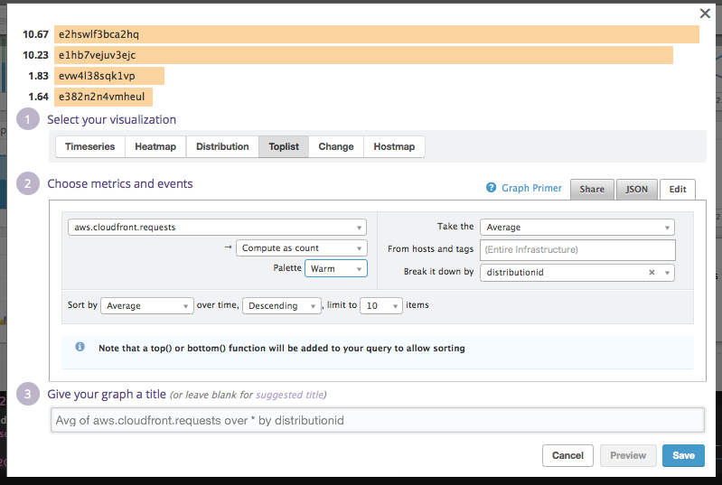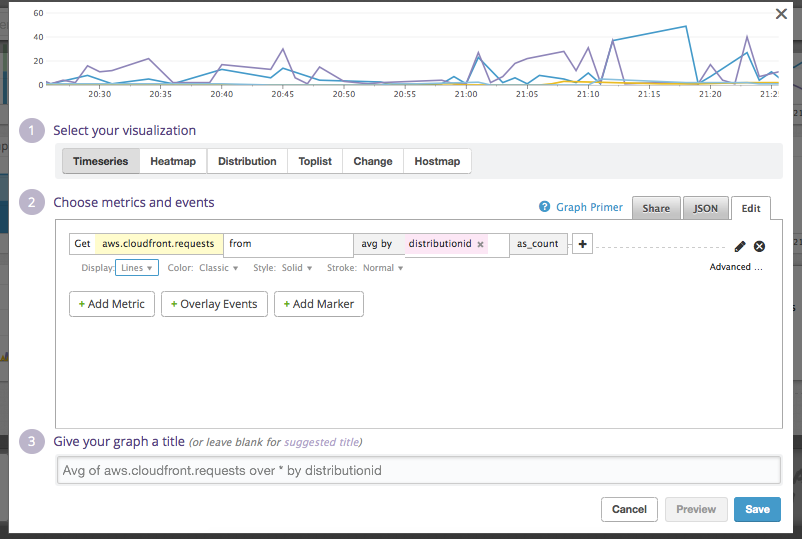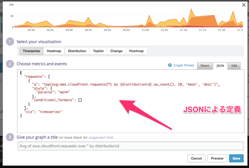 グラフのタイプもTimeseriesだけでなく、Heatmap, Distribution, Toplist, Change, Hostmapなど様々です。