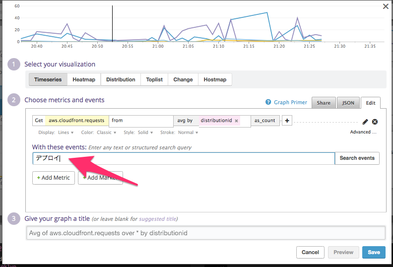 イベントをグラフ上に反映することもできます。例えば以下のように「デプロイ」というキーワードを登録して
