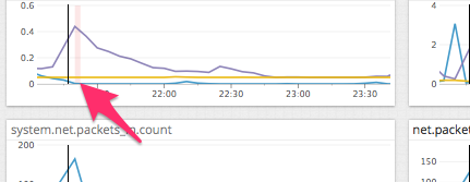 このようにピンクの線が付きます。必ずデプロイを行うときにEvents画面に手動や自動でデプロイと発言しておくことでピンクの線が出て便利です。どこからシステムが変わりだしたか(良くなったか・悪くなったか)がわかります。