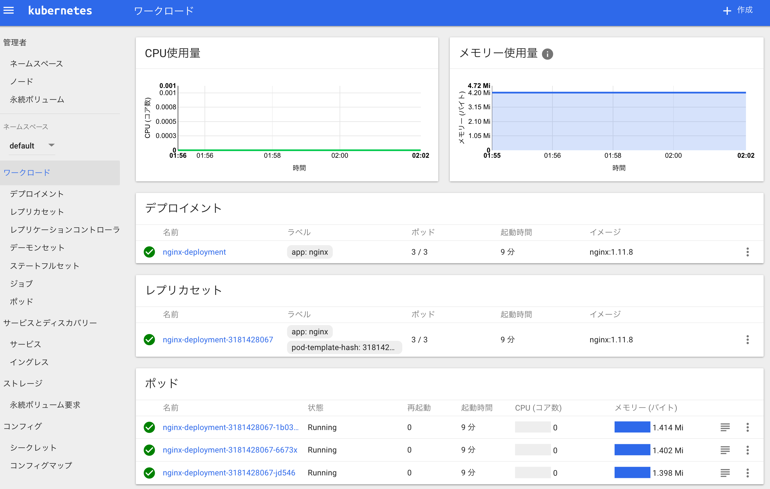 他のPodも立ち上げて1つのクラスタで複数のアプリを共存させました。