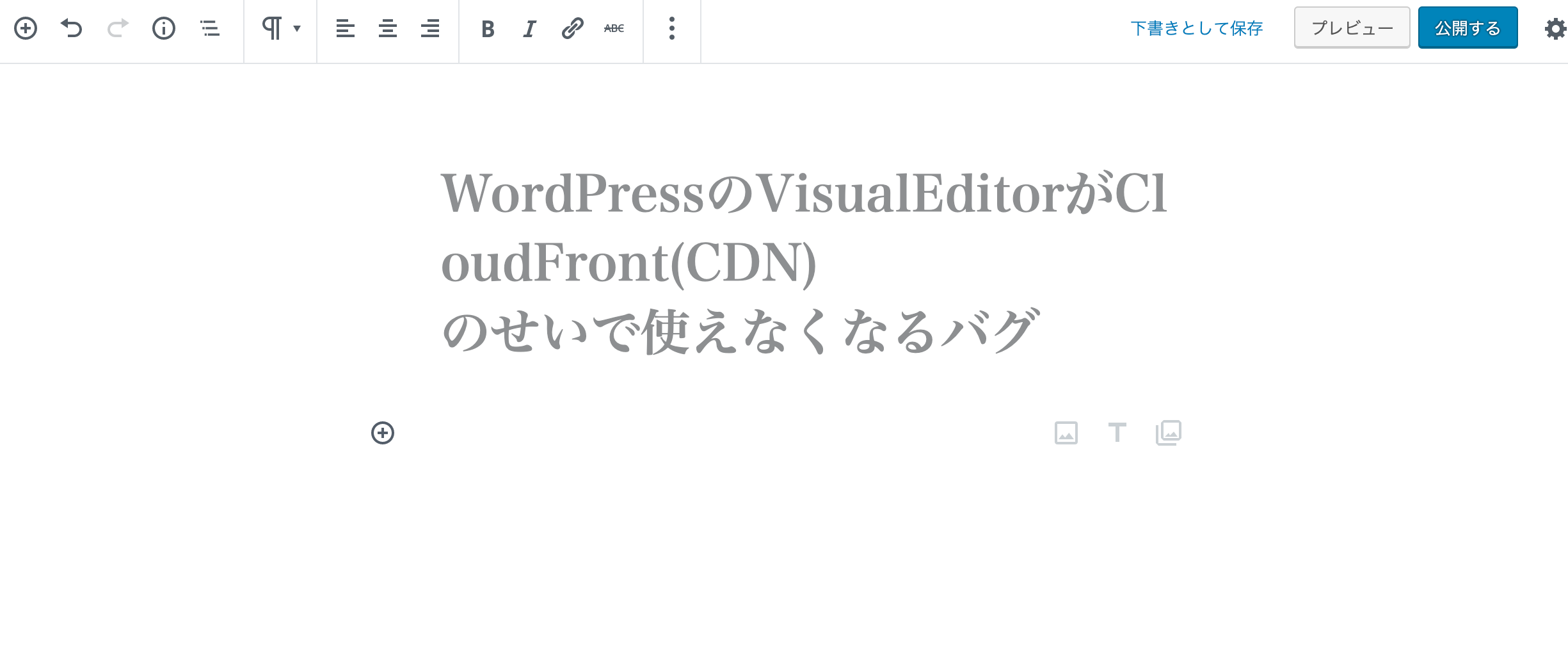 WordPressを立ち上げて、CloudFront経由で配信するようにした後で記事編集画面へ行くとビジュアルエディタの様々な機能が使えなくなります。