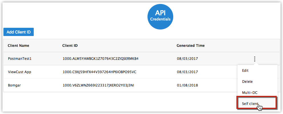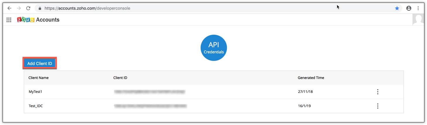 代わりに Zoho Developer Console を開いて、クライアントの登録を行います。
