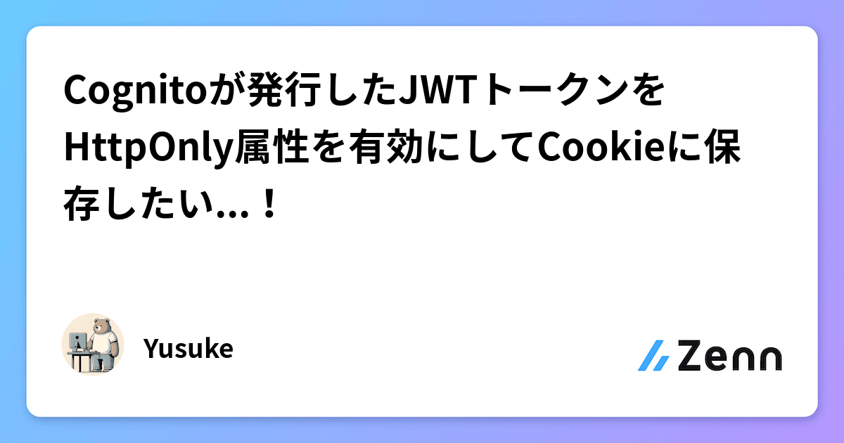 認証リクエストはCognito側へ送り、成功であればidToekn, accessToken, refreshTokenが発行される。accessTokenを使ってBackend側(リソースサーバー側)と認証必須のリソースのやり取りを行う