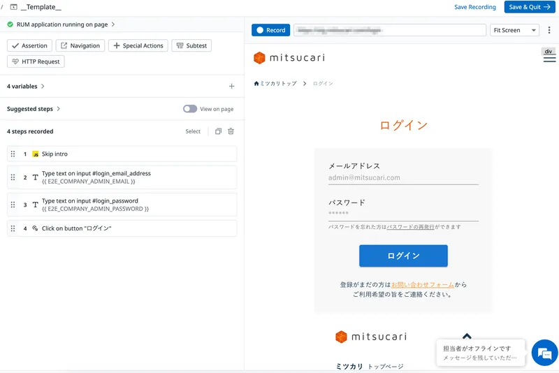 基本的に操作するだけでレコーディングできるため、この点はノーコードでテストケースを作れて楽ですね。非エンジニアやジュニアエンジニアでも十分に作ることができると思います。実際にミツカリにはジュニアエンジニアがいますが、30分程度のレクチャー・キャッチアップだけで、今では普通に保守できています。