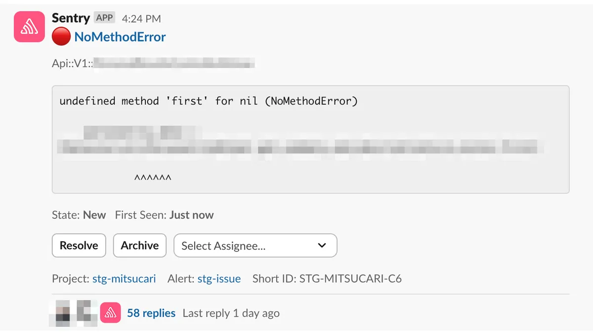 ただ、私の観測範囲ではあまりResolveとArchive以外の選択肢は活用されている例を聞きません。理由としてはインシデントはSentry以外の経路でも発生するために、インシデント管理を別のシステムや方法でやっているからだと予想しています。ちなみにミツカリでもこの辺りはうまく活用できていないです。基本的にはResolveかArchiveで済ませています。