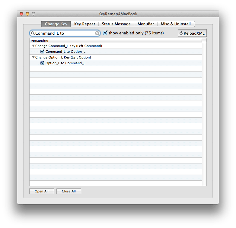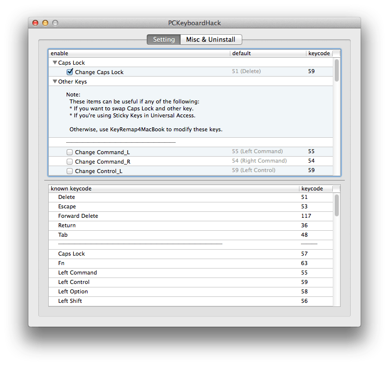 また、KeyRemap4MacBookは非常に便利ですが、内部キーボードを利用するときなどに不便になるケースがあると思うので、外付けキーボード用と内部キーボード用で2つプロファイルを用意しておくと良いと思います。