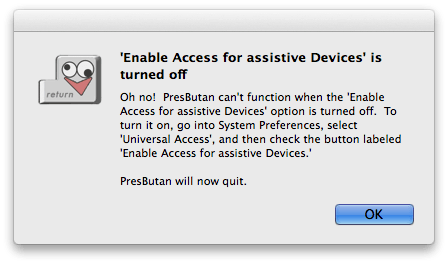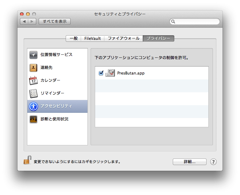そんなときは[システム環境設定] -> [セキュリティとプライバシー] -> [アクセシビリティ]で以下のようにチェックを入れます。
