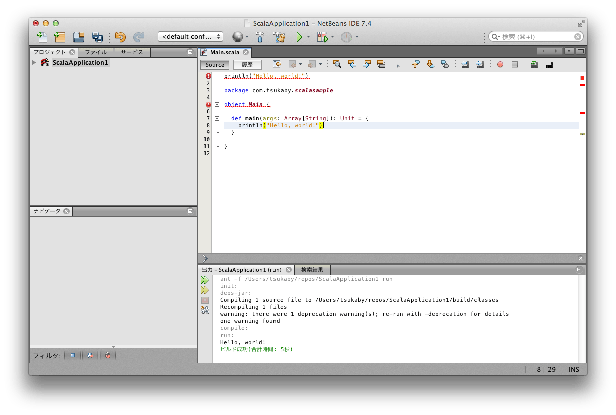 Scalaやろう!と思い、最近インストールしたNetBeansでコーディングしてみることにしました。
