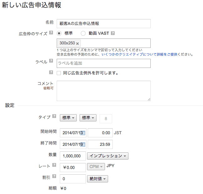 まず、通常、顧客から受注を受ける前に広告ユニットというものを作成しておきます。
