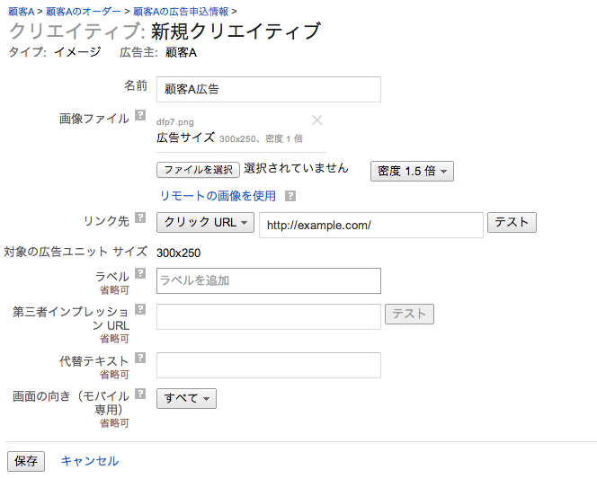 ここまで入力したら一旦保存し、オーダーおよび広告申込情報を保存します。